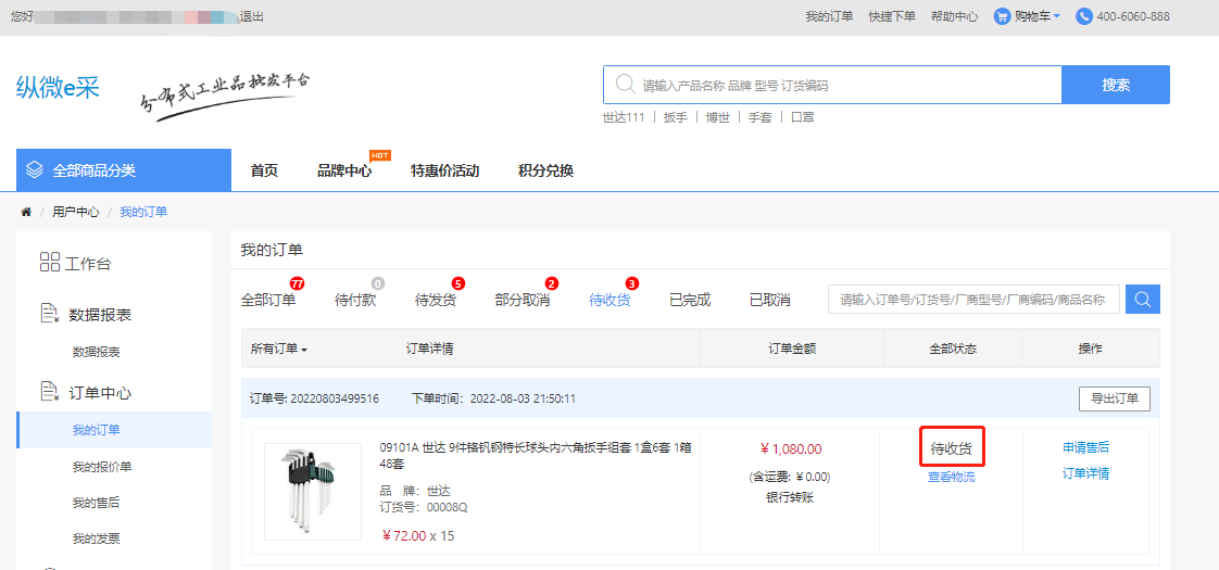 查找订单状态,在我的订单界面查看订单状态,准备收货